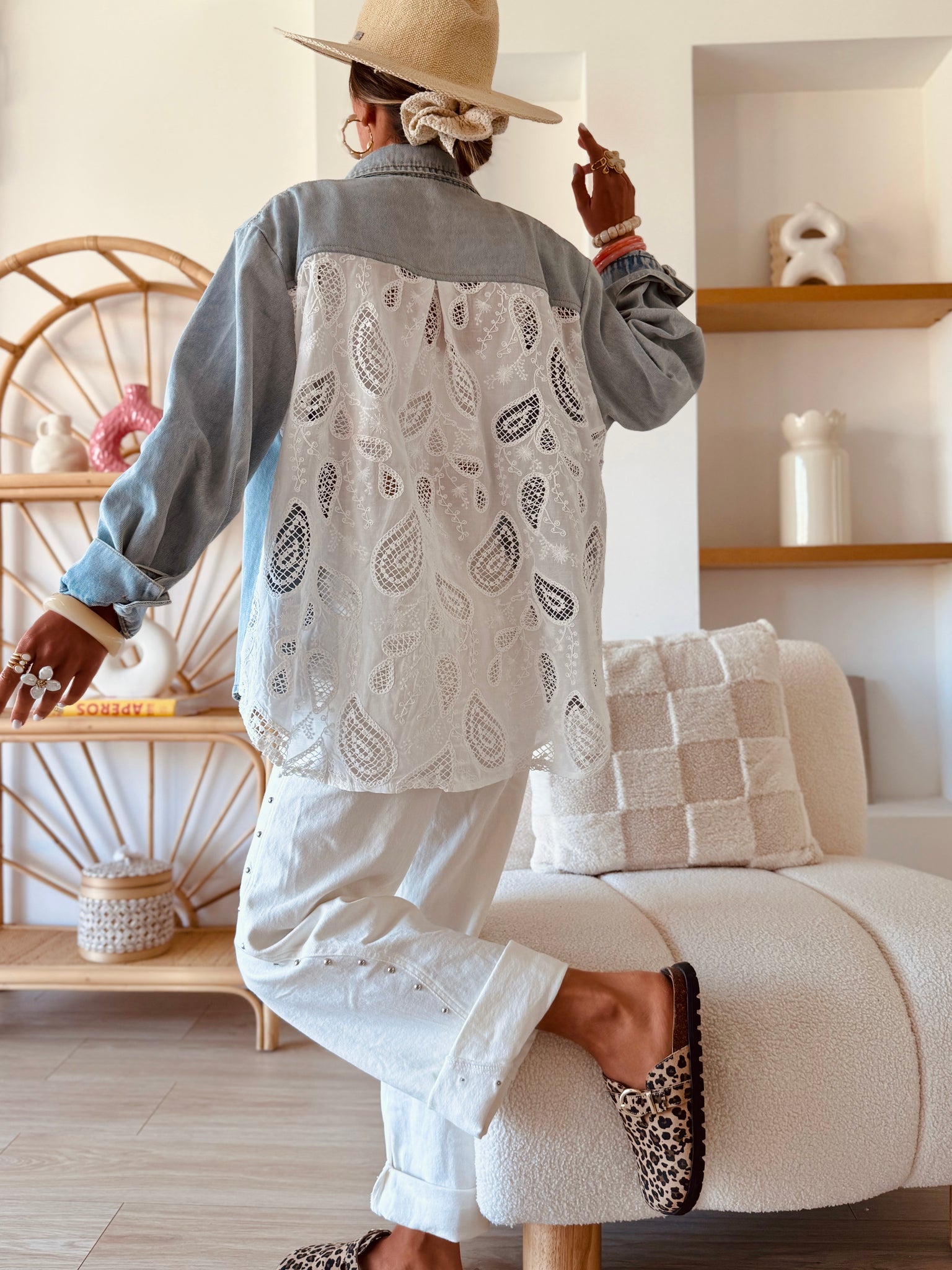 Elle surprend par son dos bimatière : du jean & de la dentelle !
