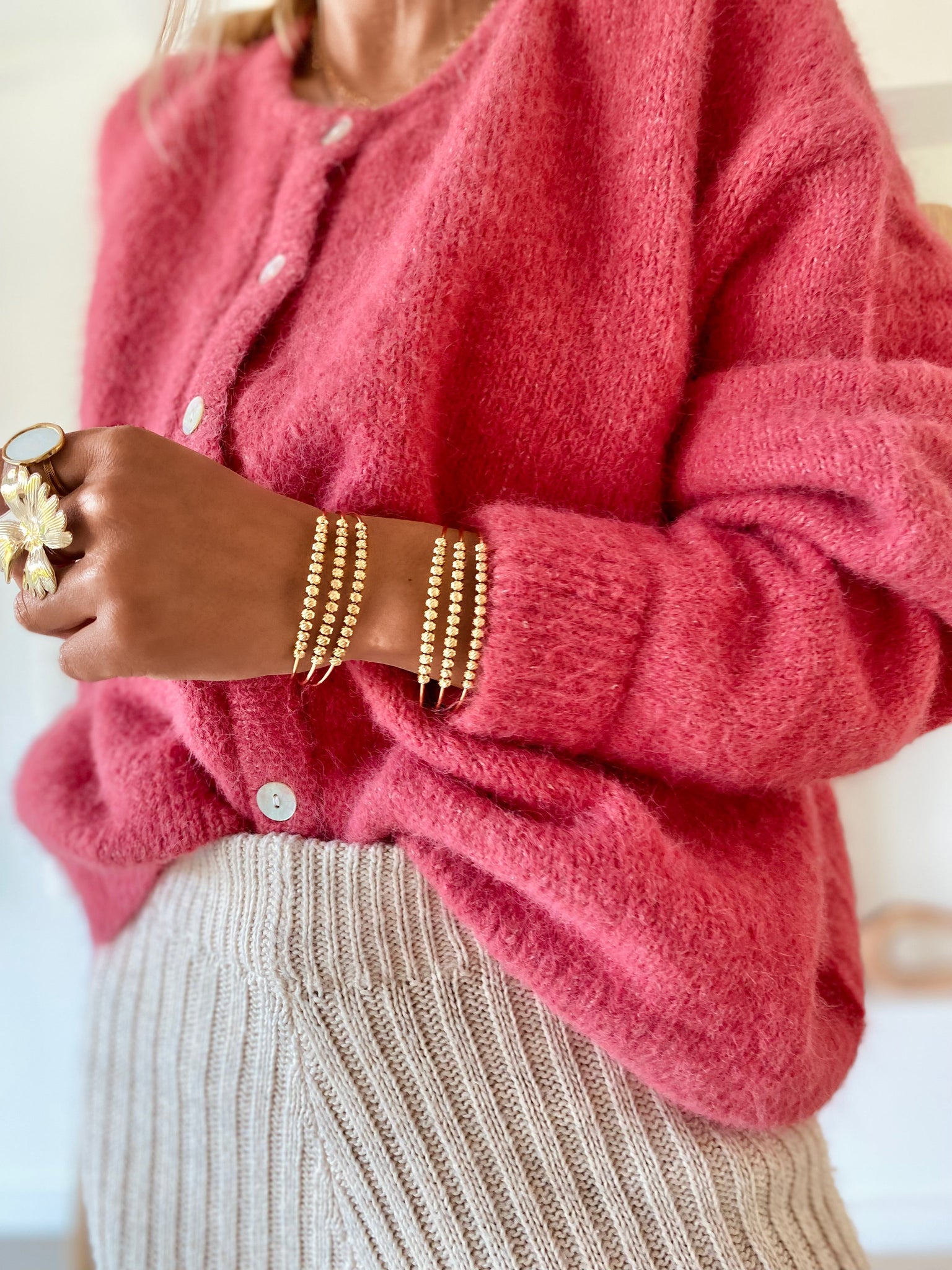 LILI, c’est un petit gilet assez simple et facile à porter. Il se distingue par sa lignée de boutons, vous permettant de le porter de plusieurs façons ! :