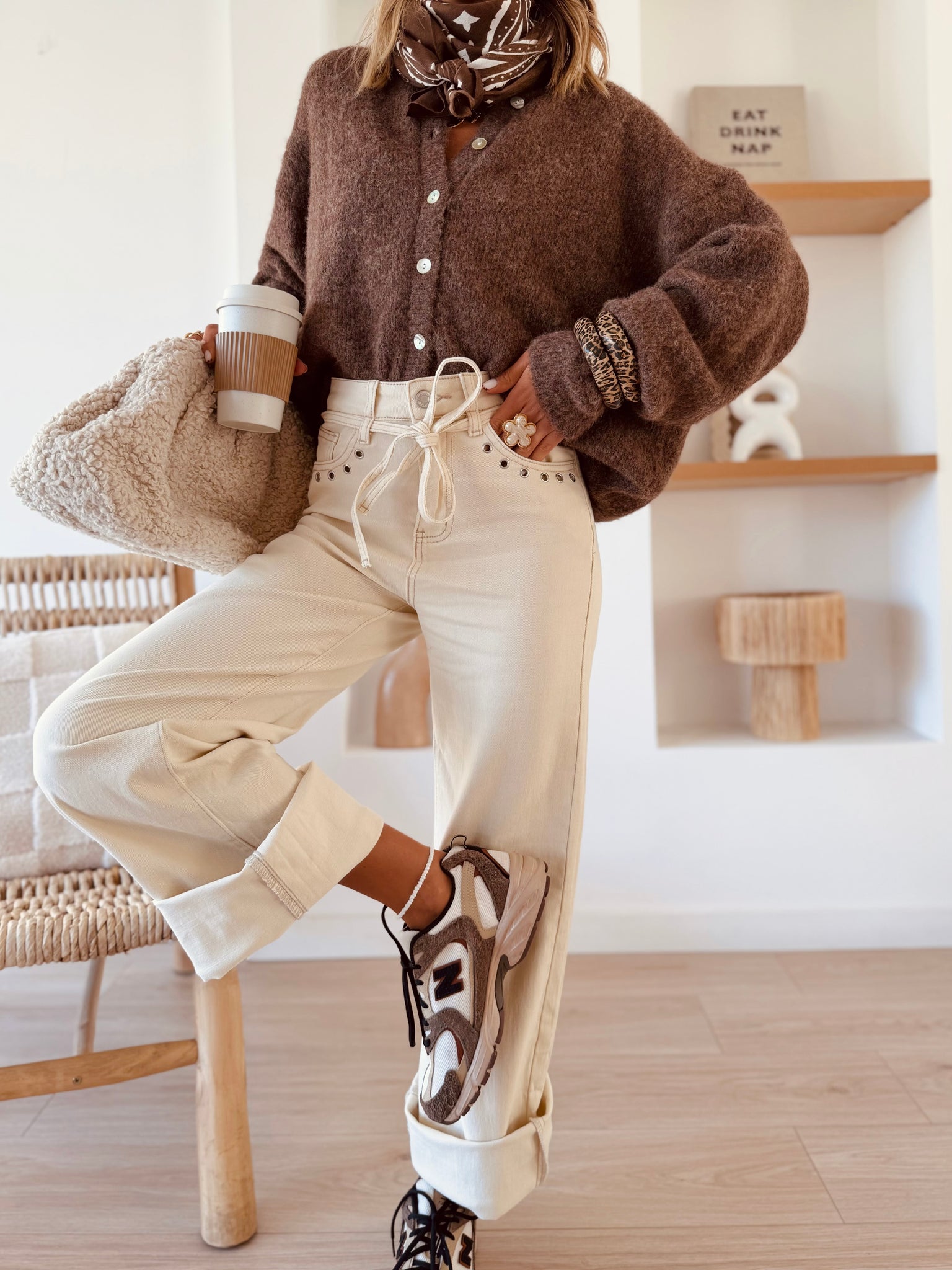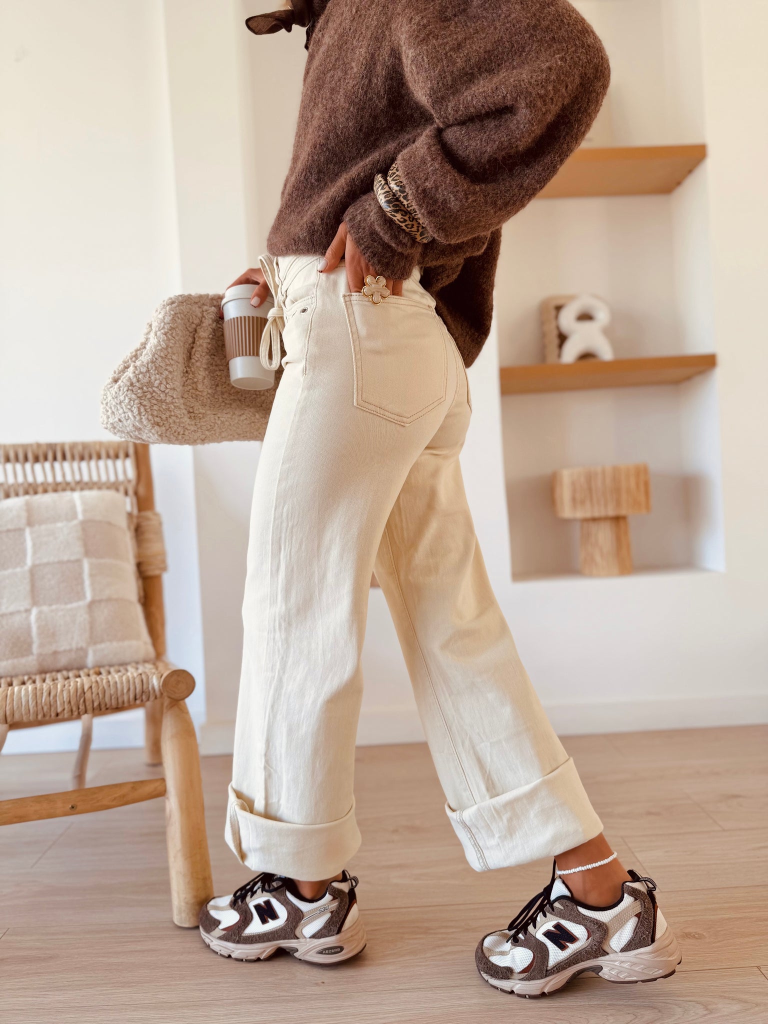 Ce jean coloris crème taille haute est la pièce parfaite pour illuminer vos looks du quotidien.