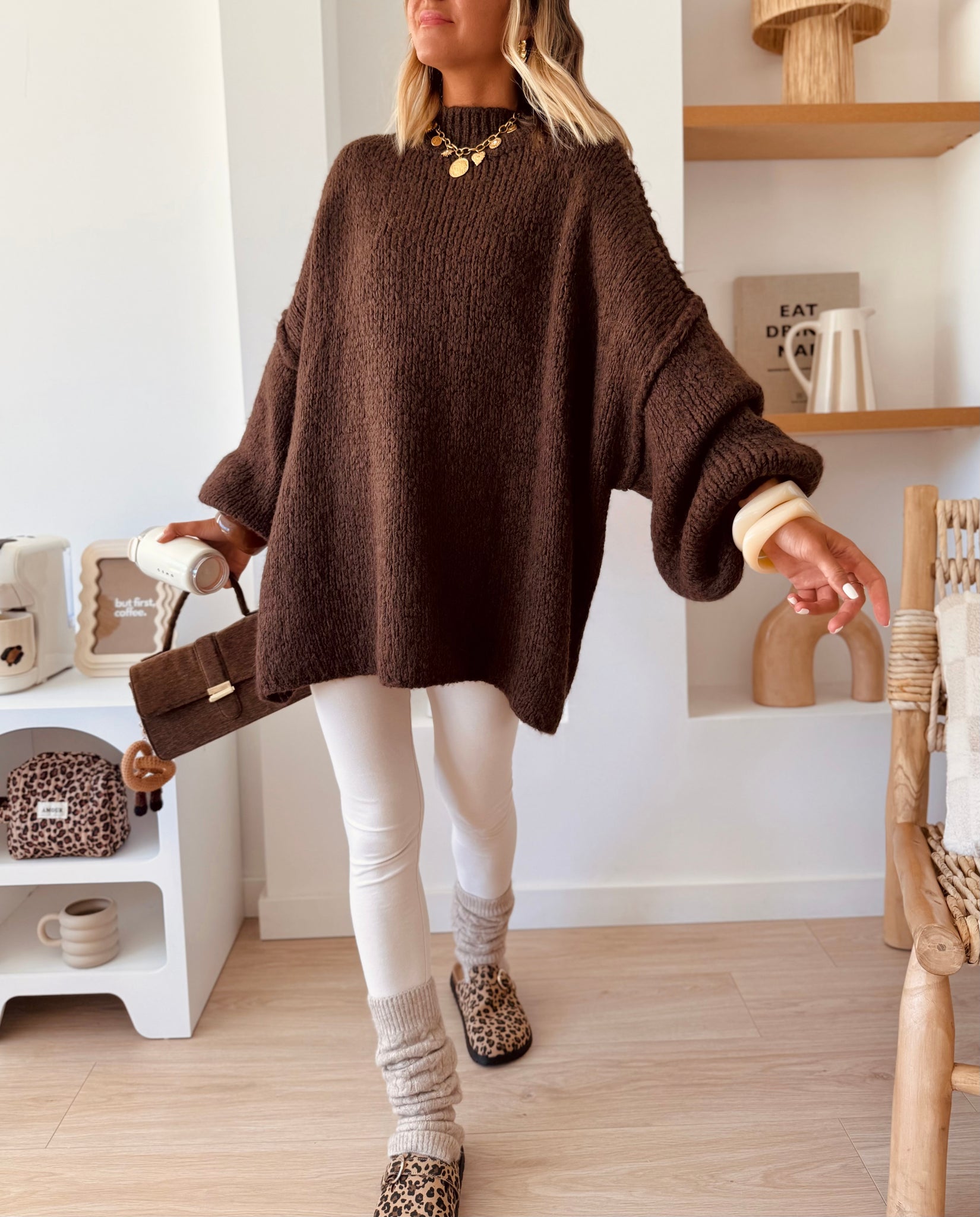 Un look d’hiver doux et confortable avec notre pull long CALISTA !