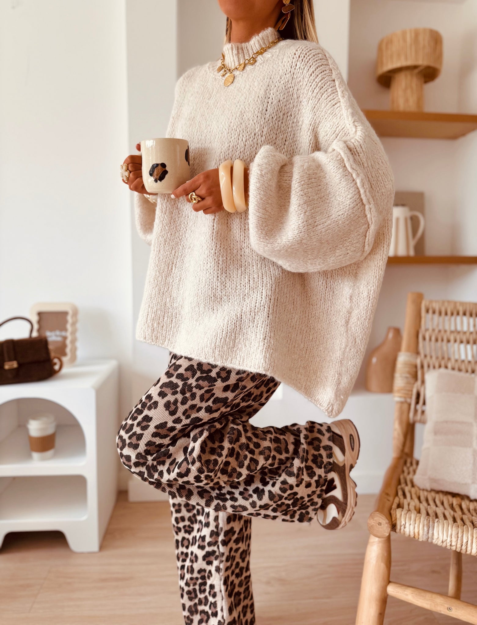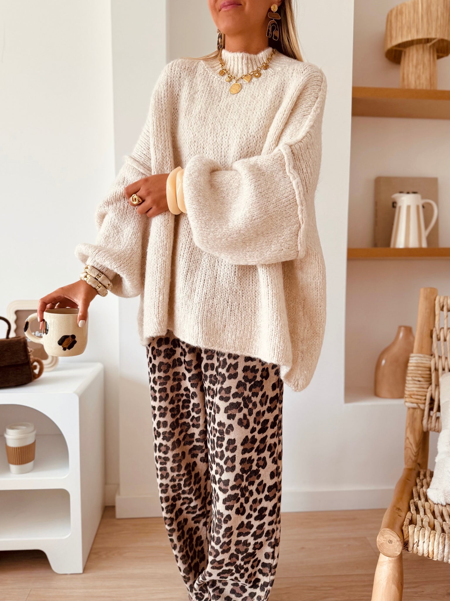 Un look d’hiver doux et confortable avec notre pull long CALISTA !