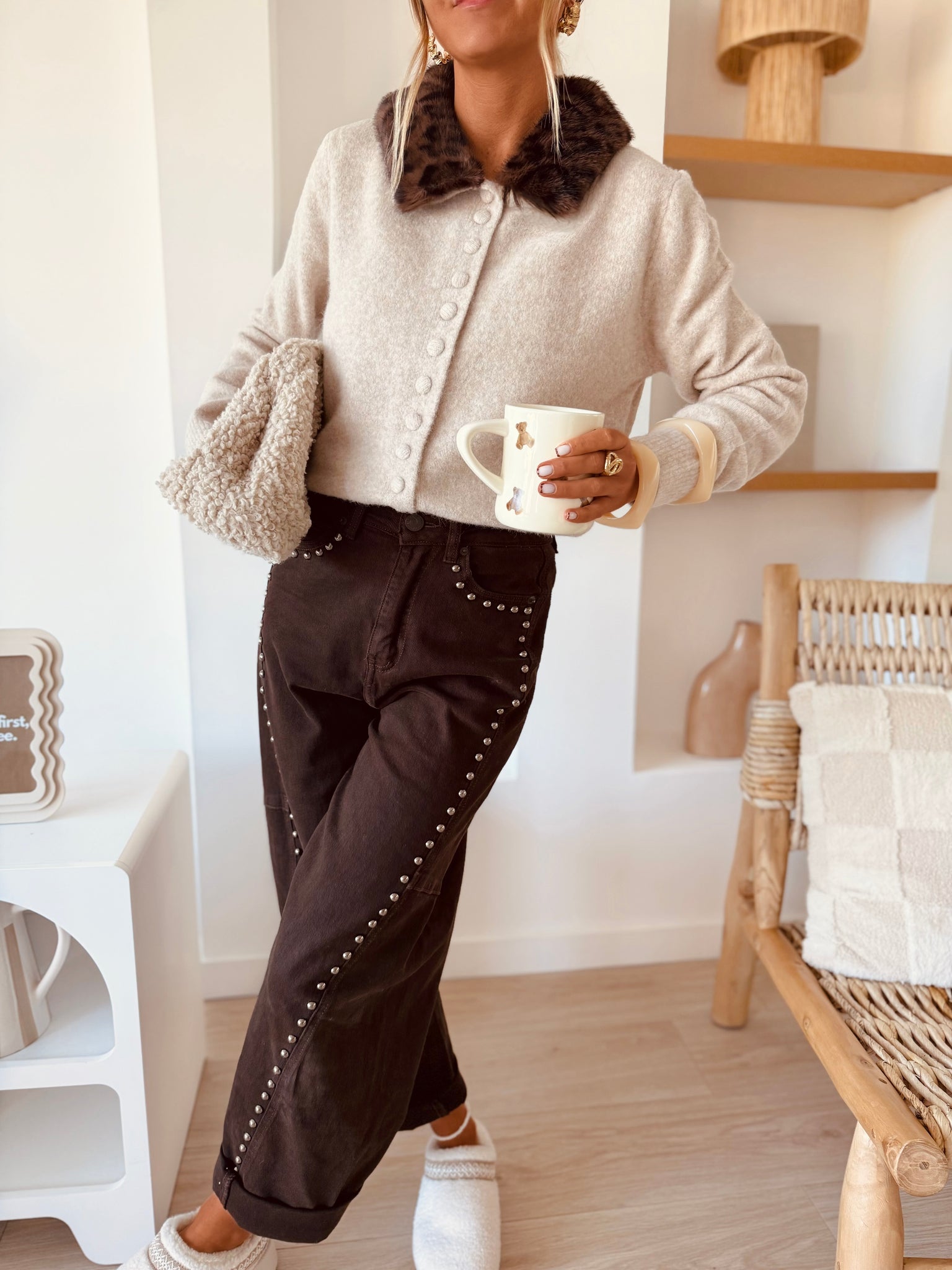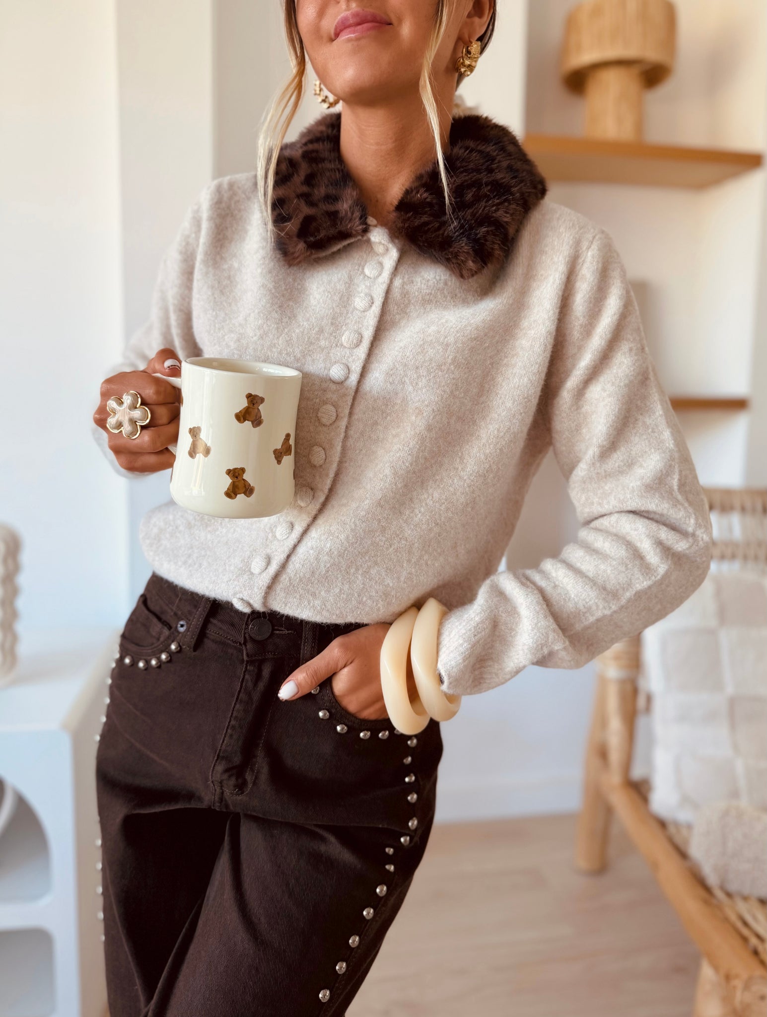 Le petit détail qui change tout ? Son col en fausse fourrure léopard, pile dans la tendance et ultra stylé. (il peut se retirer grâce à des petits boutons intégrés discretement)