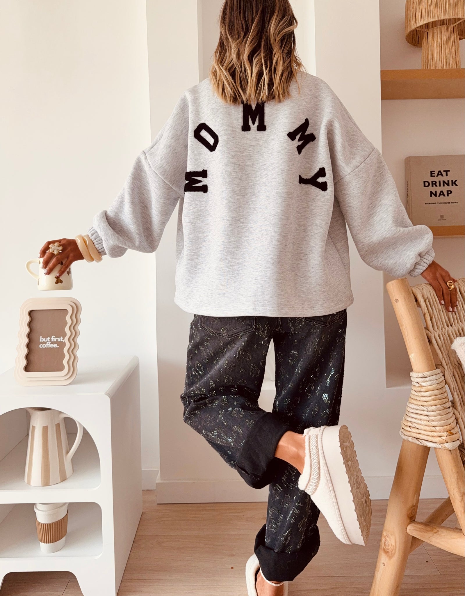 Les mamans !!! Ce sweat est pour vous ! Il vous fait honneur, avec ce slogan noir « MOMMY » brodé dans le dos, qui résonne et nous fait écho !