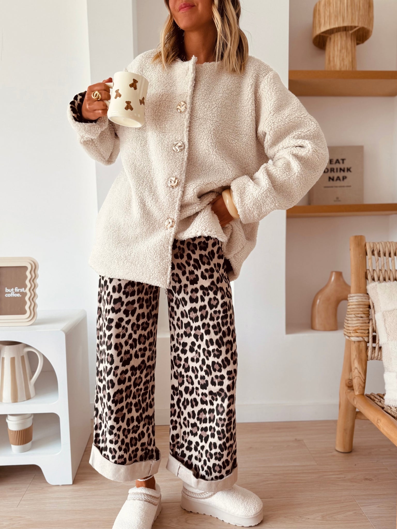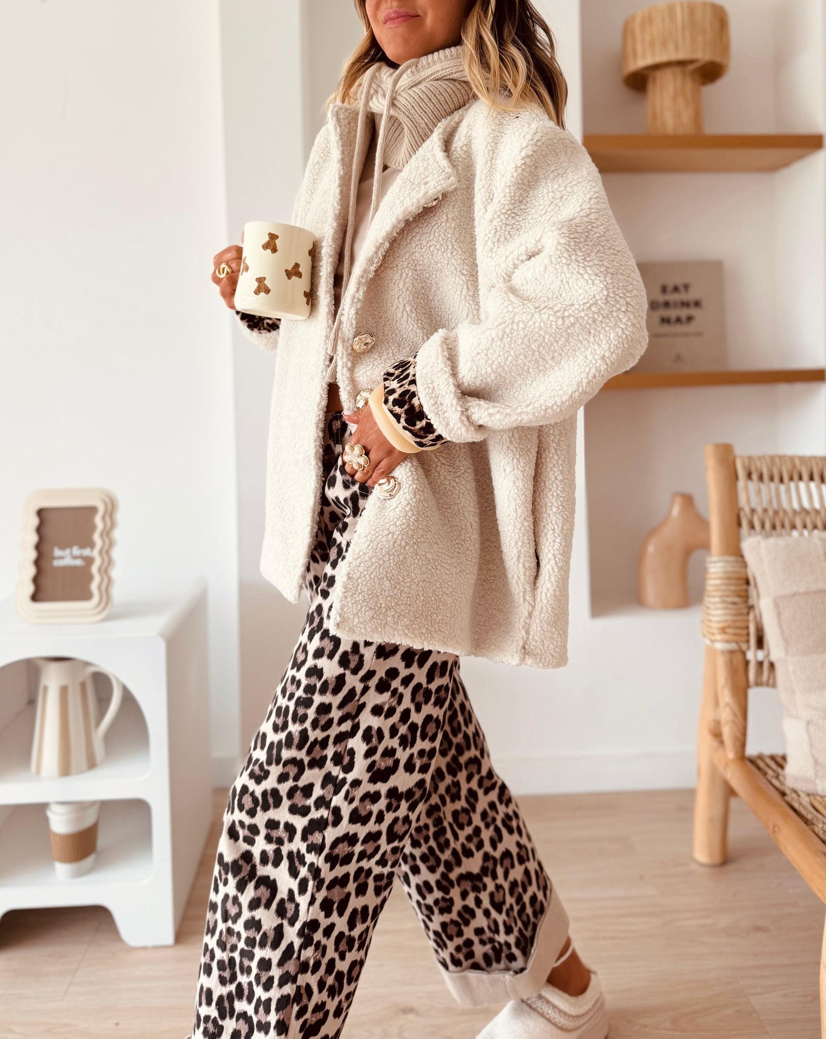 Son + : elle dispose d’un intérieur doublé satiné léopard, qui est visible lorsque les manches sont retroussées ! On adore ce détail délicat qui contraste si bien avec la jolie moumoute