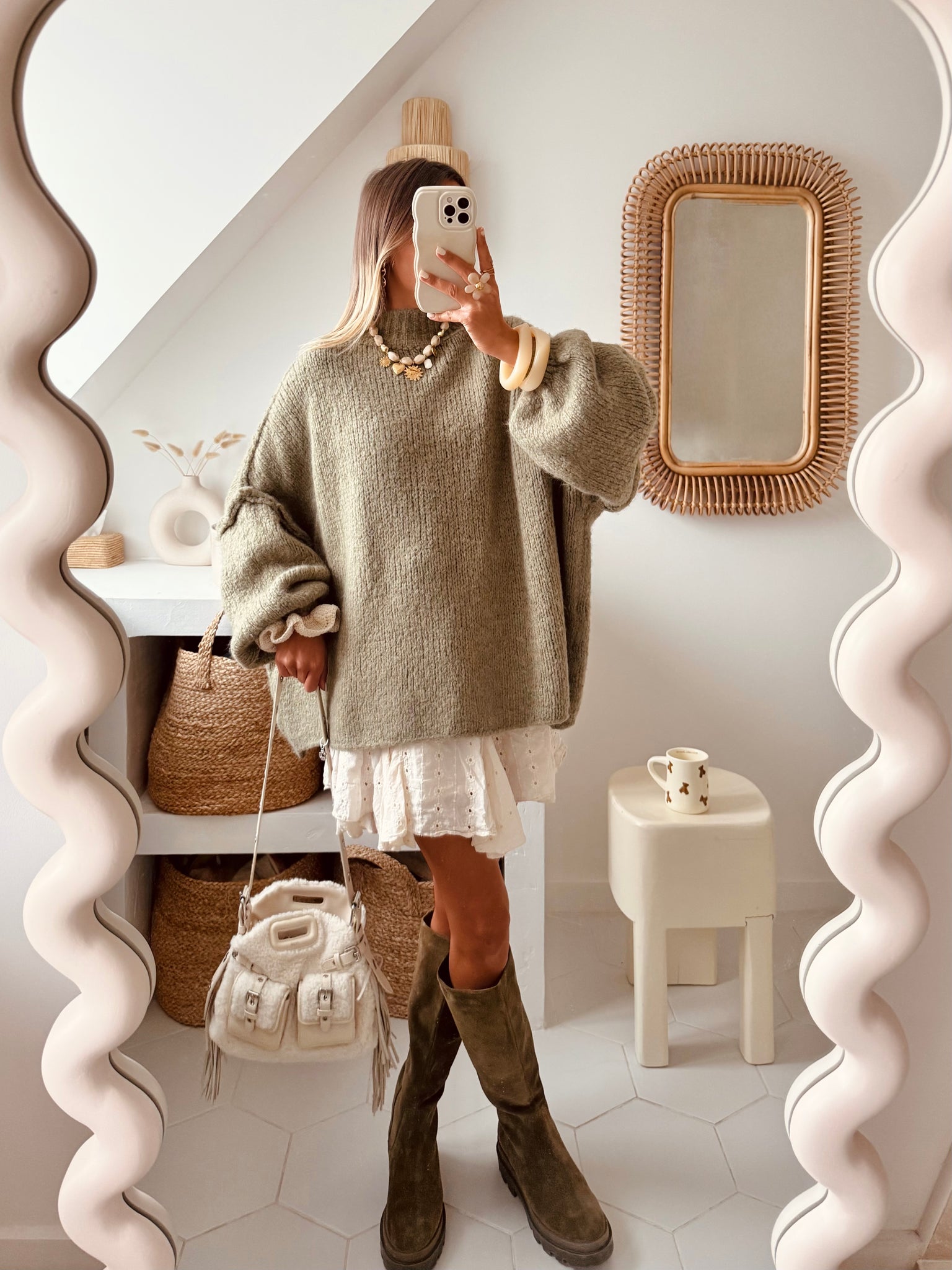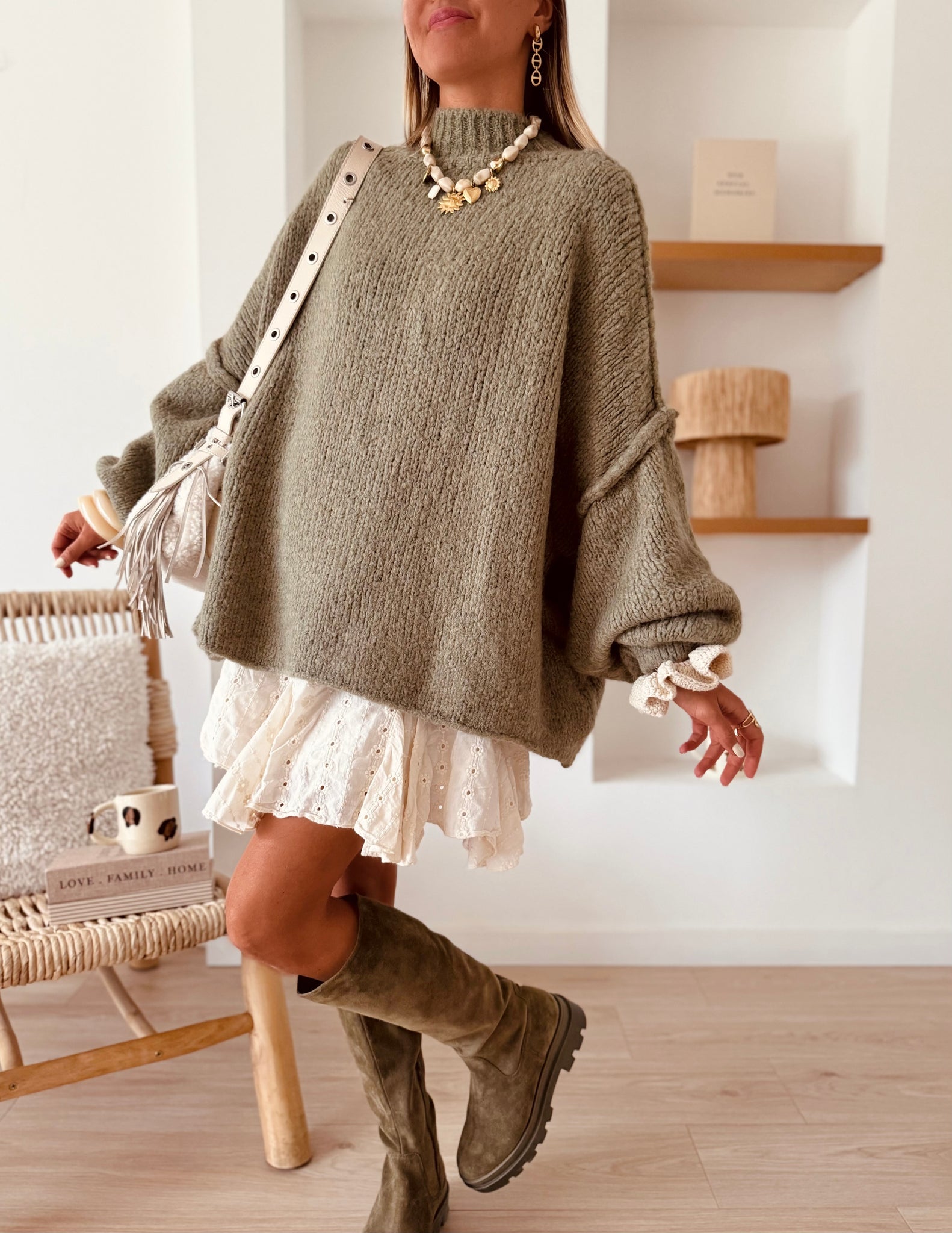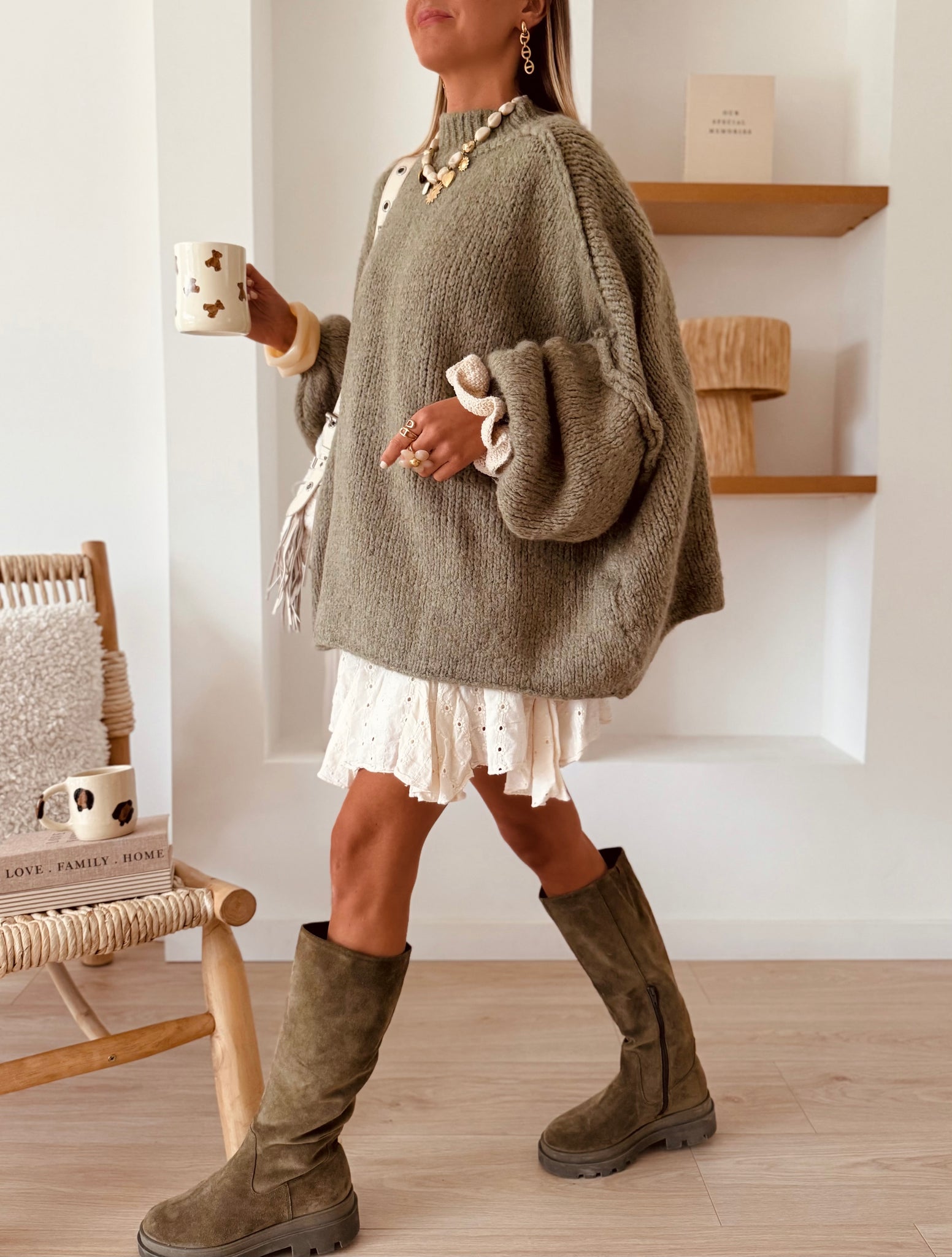 Un look d’hiver doux et confortable avec notre pull long CALISTA !